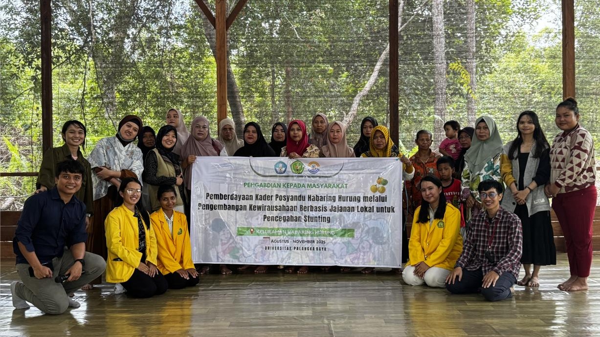 PALANGKARAYA – Tim dosen Universitas Palangka Raya (UPR) melaksanakan program pengabdian masyarakat bertema Pengembangan Kewirausahaan Jajanan Lokal untuk Pencegahan Stunting bersama mitra Posyandu Habaring Hurung.